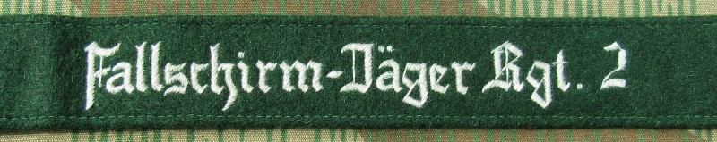 RSE159.Fallschirm-Jager Rgt 2 enlisted ranks cufftitle. Hand embroidered thread on Green. $19.95 |