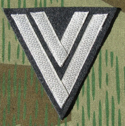 RSE557.Luftwaffe Obergefreiter sleeve chevron. Aluminum tress on black wool. $10.95 |