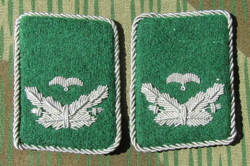 RSE612.Luftwaffe enlisted ranks collar tabs.Green cloth with White piping